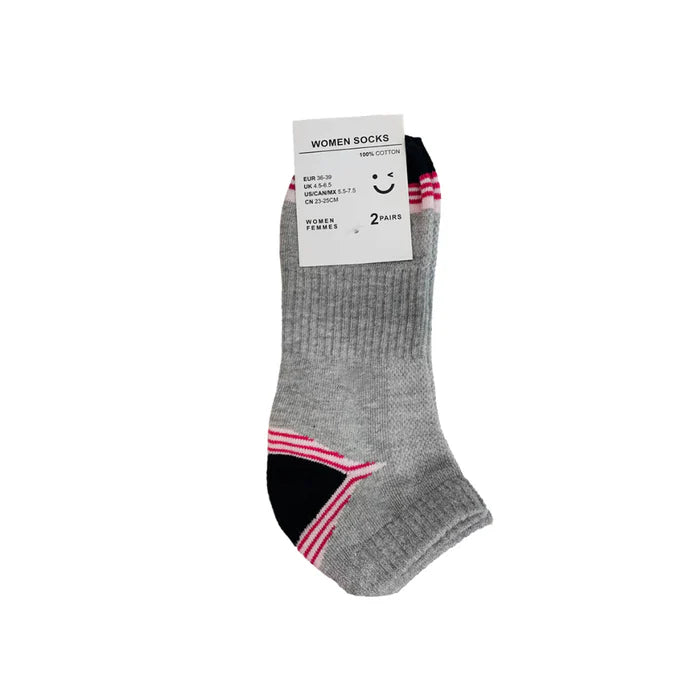 Upgrade your sock collection with Women Socks (White - Grey). Designed for everyday wear, these ankle socks offer a perfect balance of comfort and style. Made from a soft and breathable cotton blend, they provide a snug and stretchy fit that stays in place throughout the day. The moisture-wicking fabric keeps your feet dry, making them ideal for any activity. The white and grey color combination adds a simple yet stylish touch to your wardrobe.
