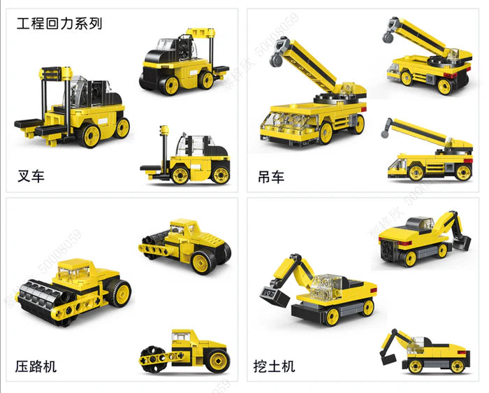 Car Model Series Pull-back Building Blocks Engineering Vehicle (4 Assorted Models)